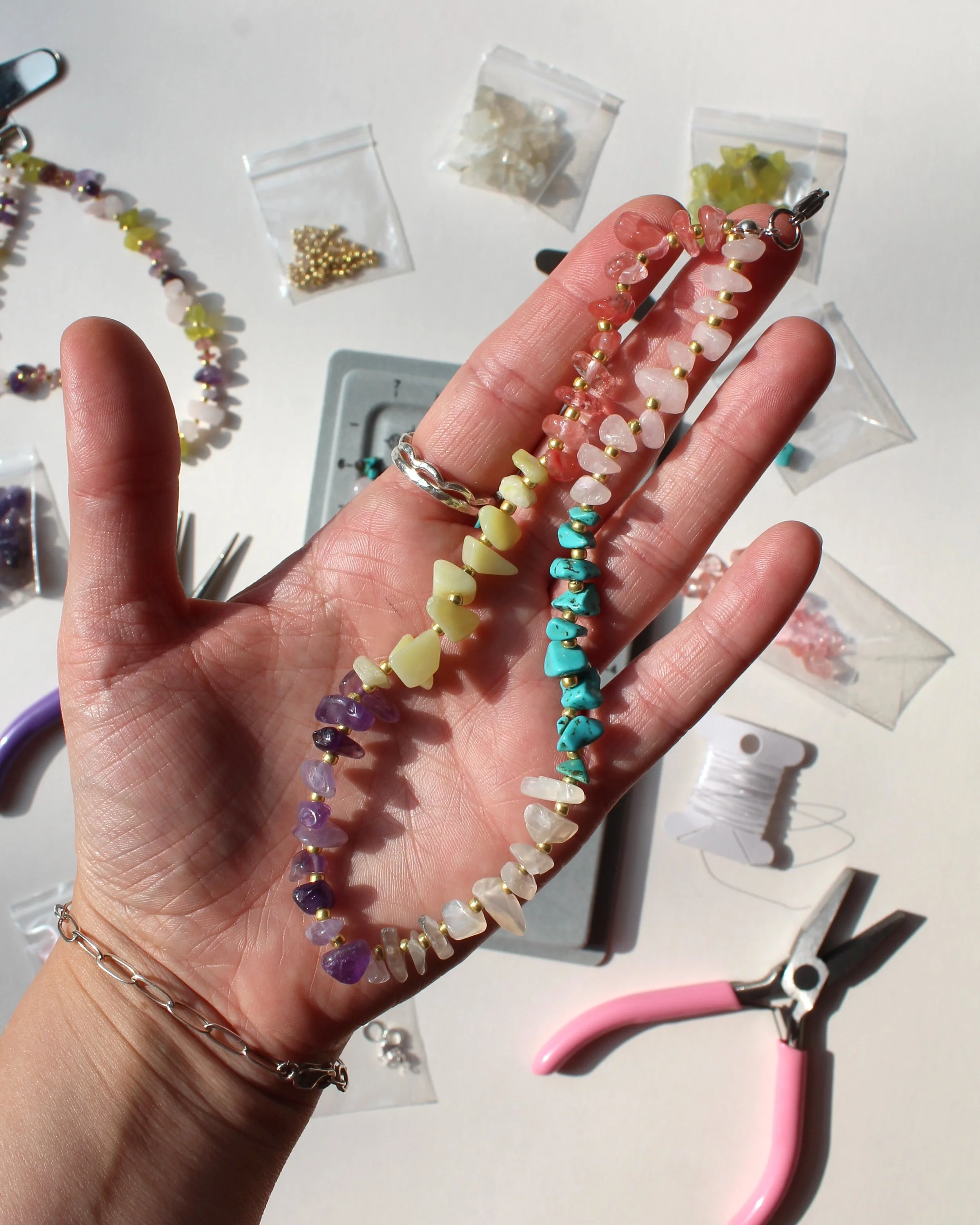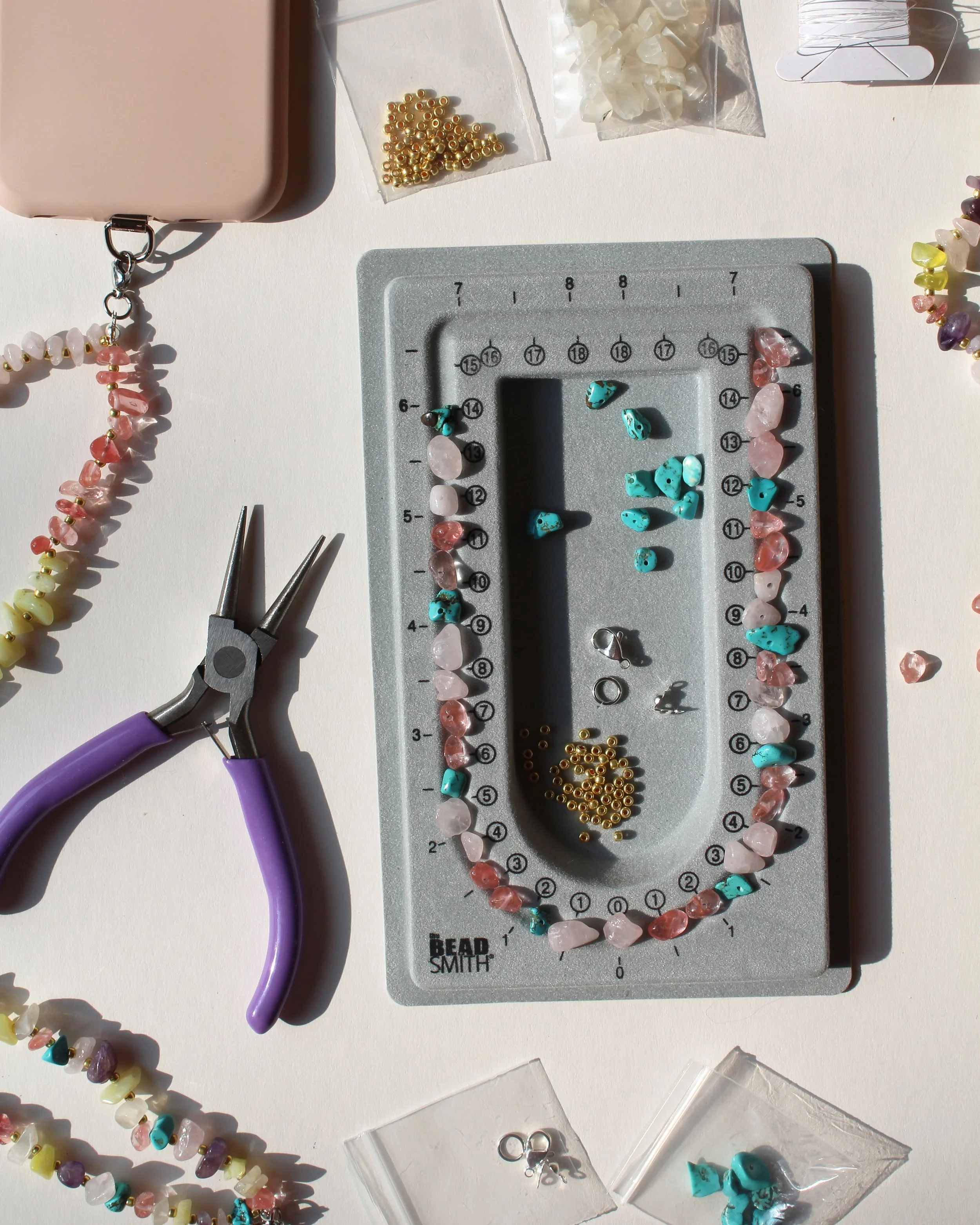 Bead your own phone strap with gemstone beads and stainless steel findings. The video will guide you through the whole process while you play with the beautiful gemstone beads!