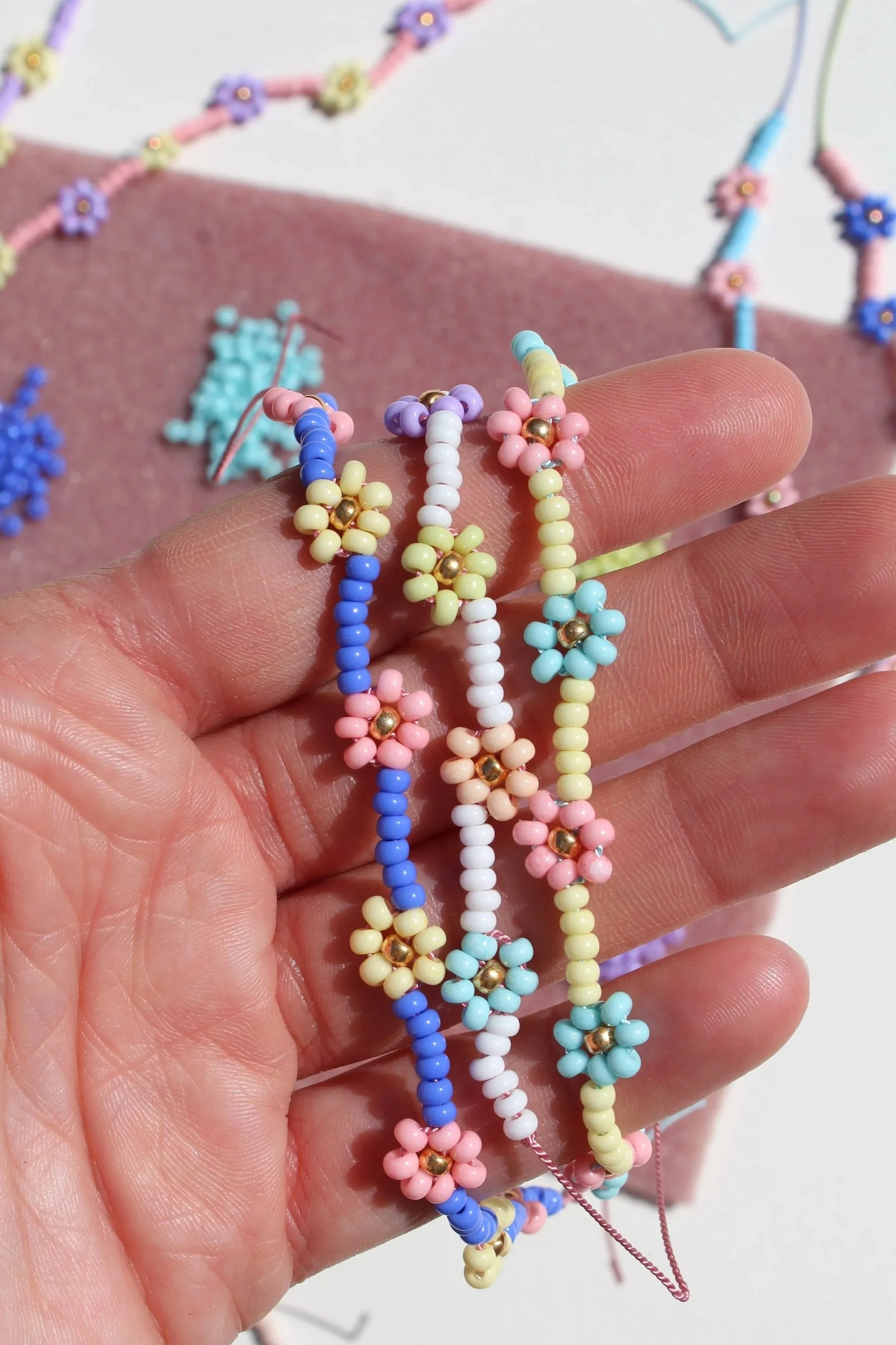 The best-selling daisy bracelet kit has just had a makeover, with new beads, a super simple fastening option and complete video instructions. The hardest part is deciding which colour way to make first…
