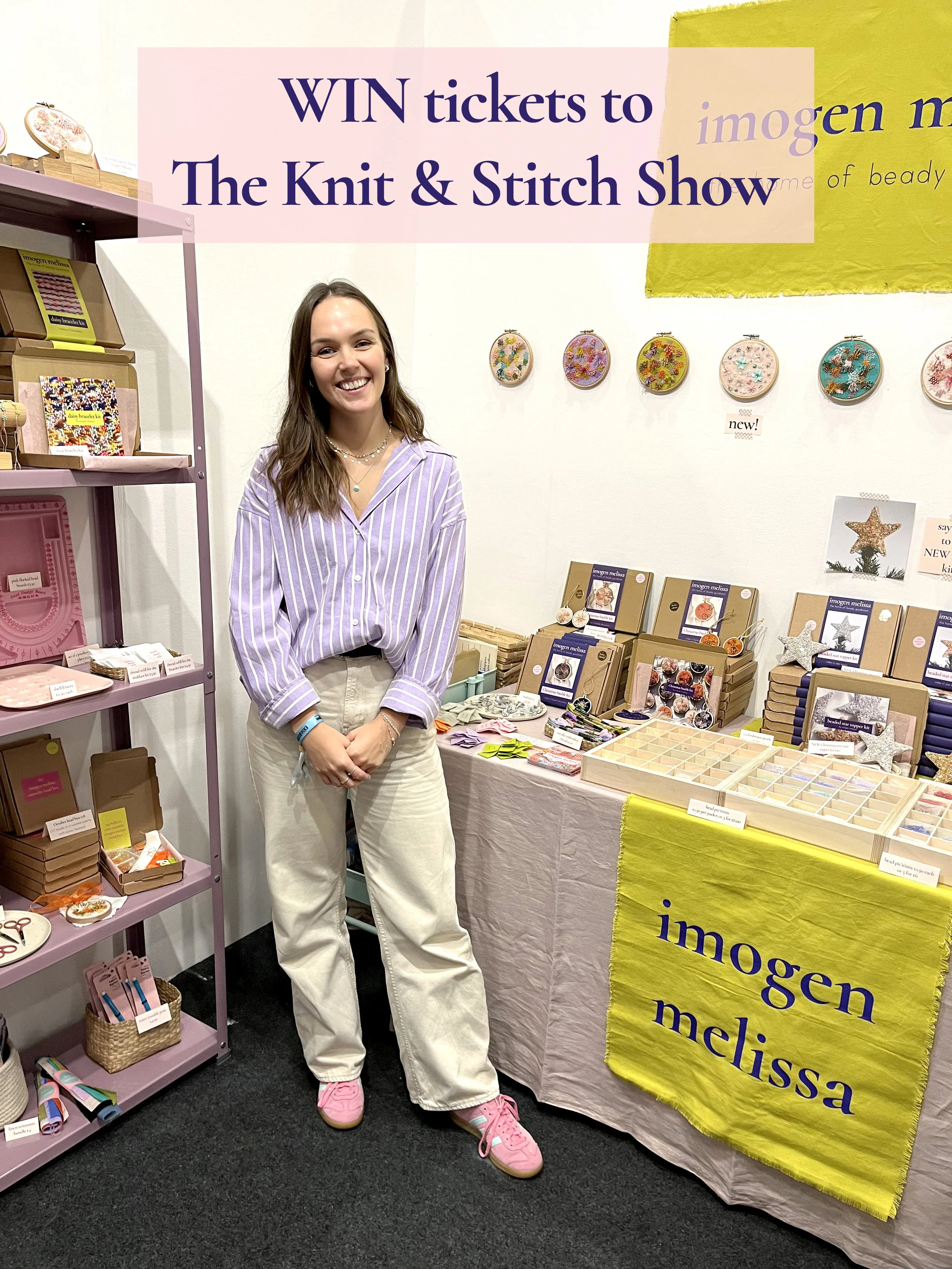 (4 tickets to win in total). Each winner will also receive 2 imogen melissa beady boxes, 1 for themselves and 1 for whoever you’ve chosen to bring with you to the show. Simply come and find me at stand D10 to claim your box!